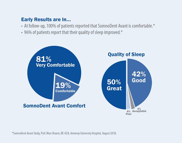 - 100% of patients reported that SomnoDent Avant is comfortable or very comfortable*