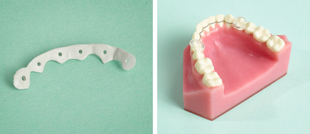 The latest addition to our retainer family is computer-designed and bespoke to each patient. Made with polyether ether ketone (a medical-grade, high performance plastic), the PEEK is heat-resistant and rigid, yet offers the necessary amount of flexibility.